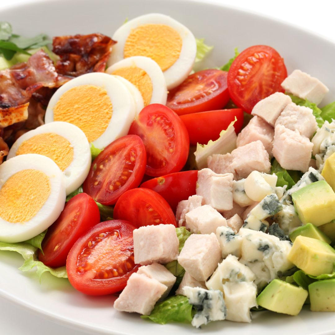 Baby Spinach and Greens, Grilled Chicken, Tomato, Bacon, Egg, Scallion, Green Goddess Dressing