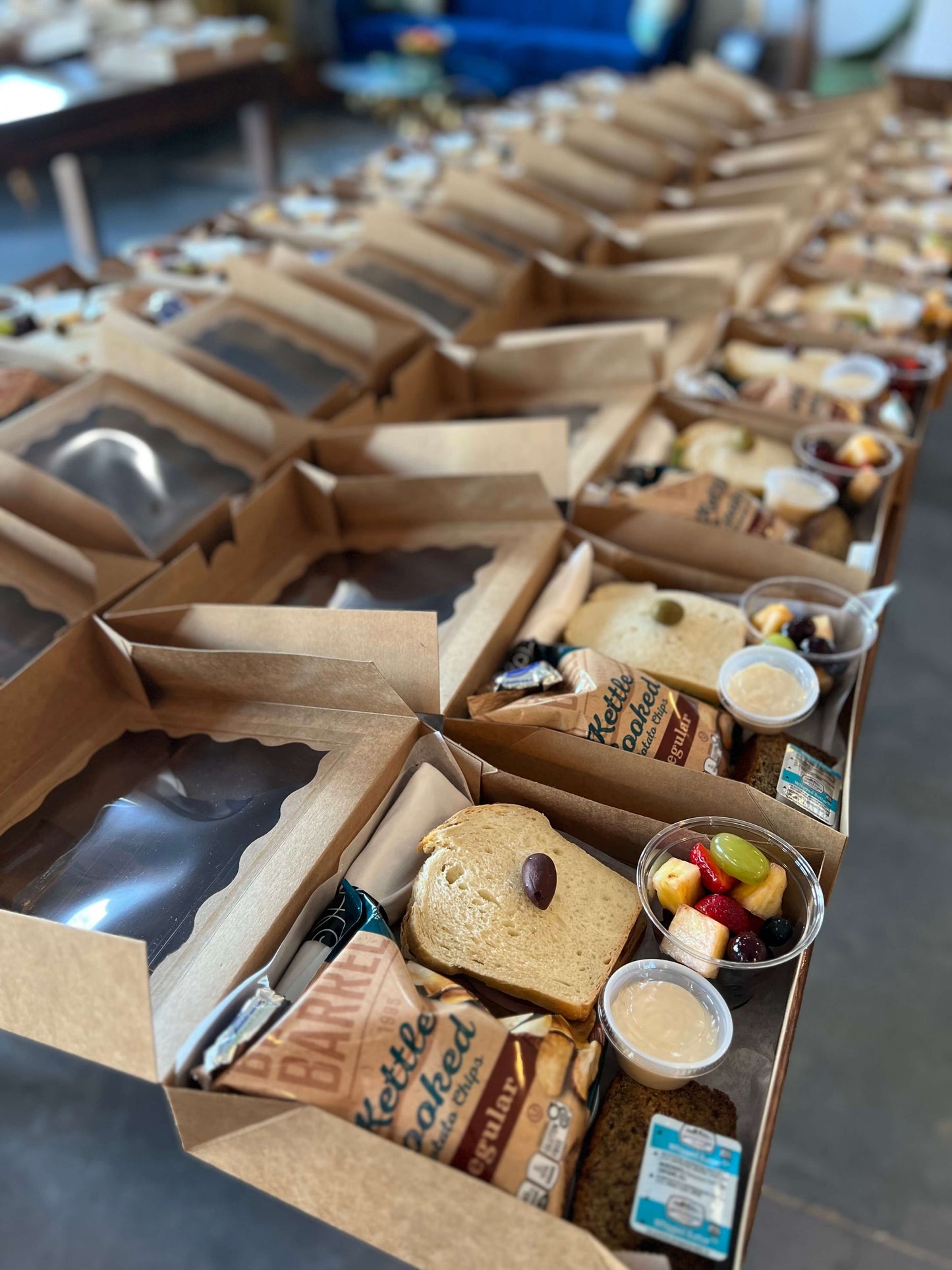 Deluxe Box Lunch: ($21.00) Sandwich or Wrap, Chips, Salad, Fresh Fruit, Dessert